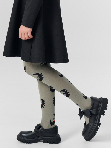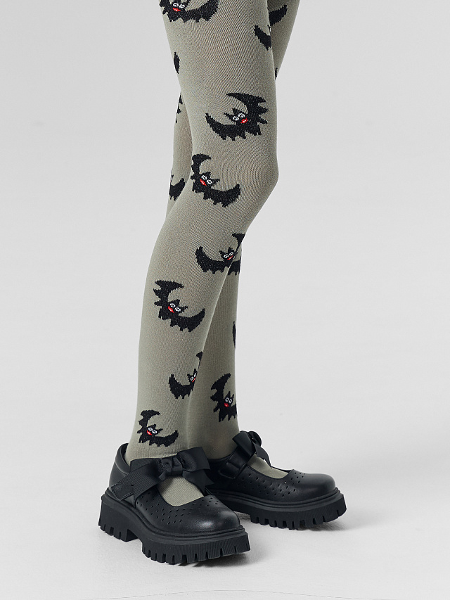 Рис.3390 Гладкие колготки с рисунком в виде летучих мышей и цветных пятки и мыска.