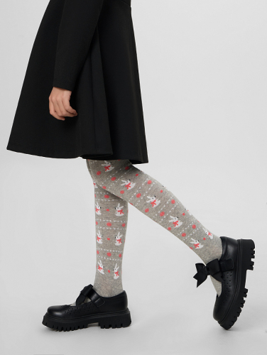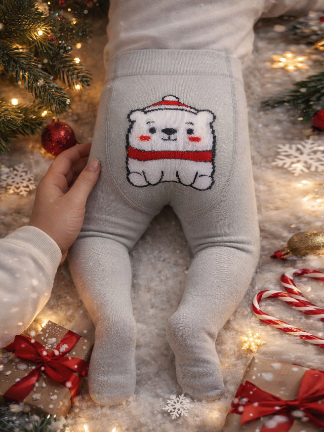 рис.3401 Колготки гладкие с рисунком в виде мишки на ластовице.