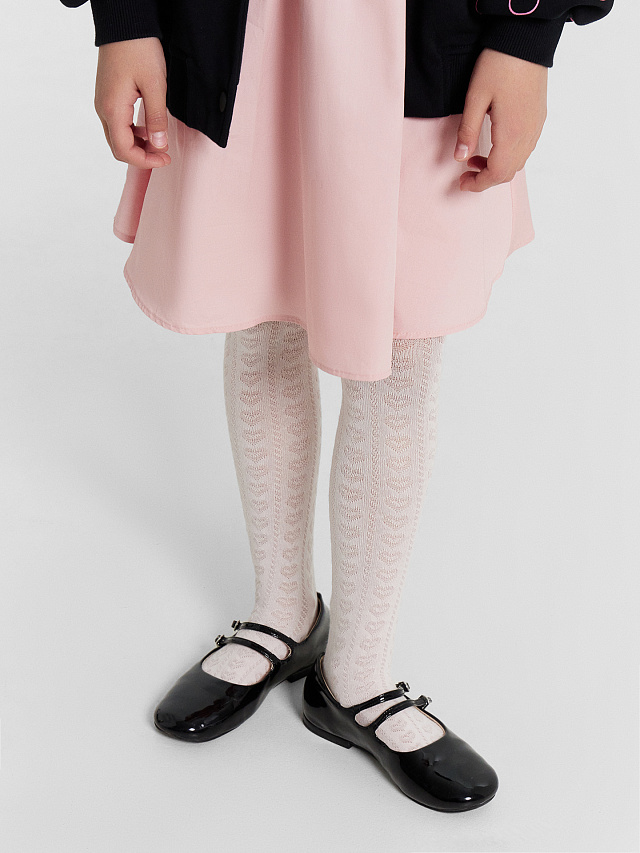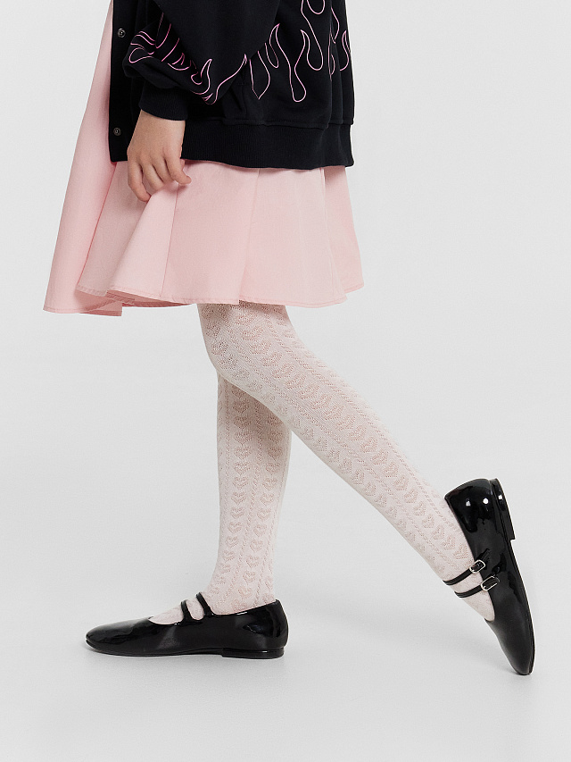 Рис.2795 Гладкие колготки с рисунком в виде сердечек, выполненным перекидным переплетением.