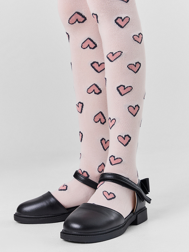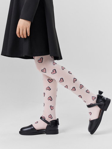 Рис.3396 Детские классические колготки с рисунком в виде сердечек в контуре.