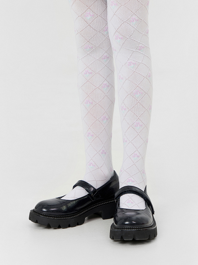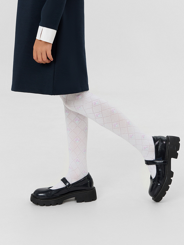 Гладкие белые колготки с объемным цветочным рисунком — это элегантное и практичное решение для школьного гардероба. Нежный рельефный узор добавляет образу утонченности, сохраняя строгий стиль, соответствующий требованиям учебного заведения.