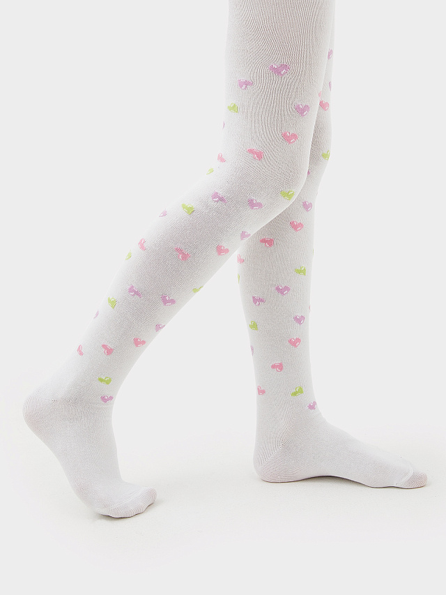 Колготки детские белые с рисунком в виде сердечек