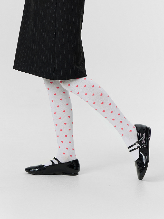 Белые колготки с сердечками легко сочетаются с любой школьной одеждой — сарафанами, юбками и платьями. Они подчеркивают аккуратность и опрятность, даря девочке уверенность в своем внешнем виде.