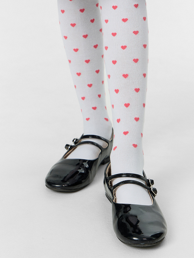 Колготки детские белые с сердечками
