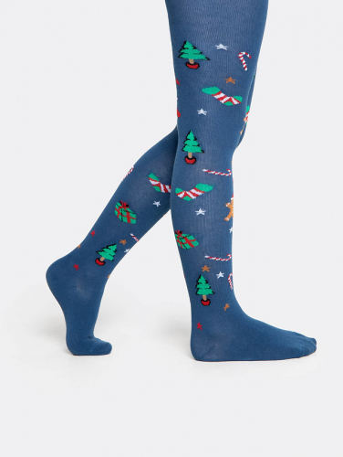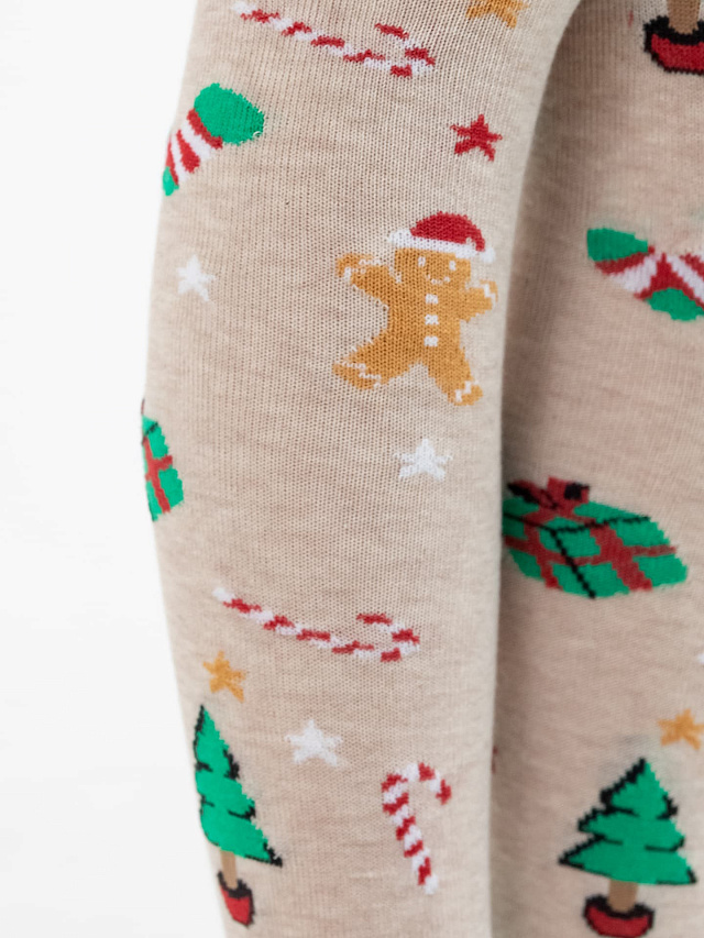 Колготки детские бежевые с рисунком в виде ёлок и печенья