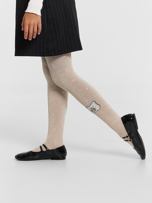 Колготки детские бежевые с узором в виде мышки