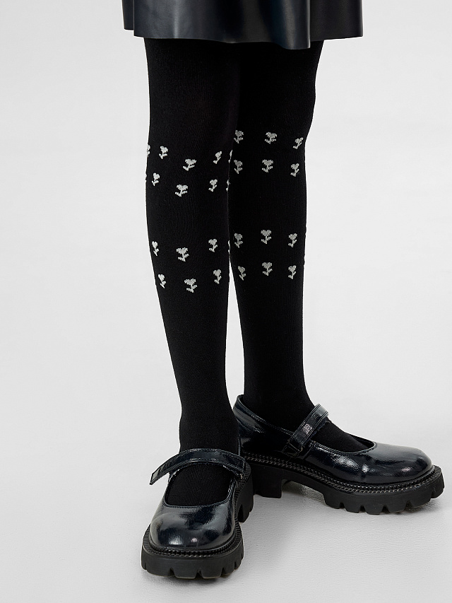 Черные колготки в школу для девочек — идеальное сочетание красоты и комфорта для ежедневной носки. Гладкая ткань с нежным цветочным рисунком добавляет образу аккуратности и элегантности. Благодаря составу из хлопка кожа будет дышать даже во время активного школьного дня, а добавление полиамида и эластана обеспечивает плотное облегание без потери формы.