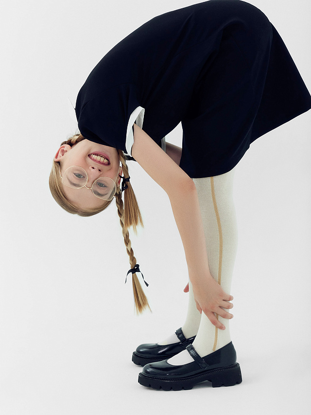 Колготки детские молочно-бежевые с рисунком в виде лампаса