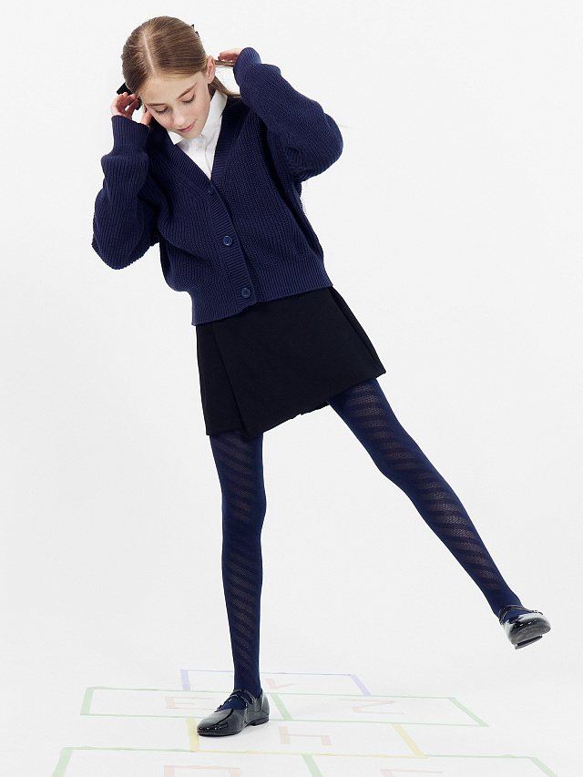 Колготки детские синие с узором в виде диагональной полоски