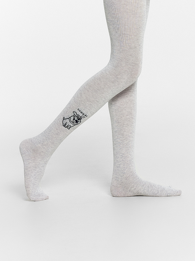 Колготки детские светло-серые с рисунком в виде бульдогов