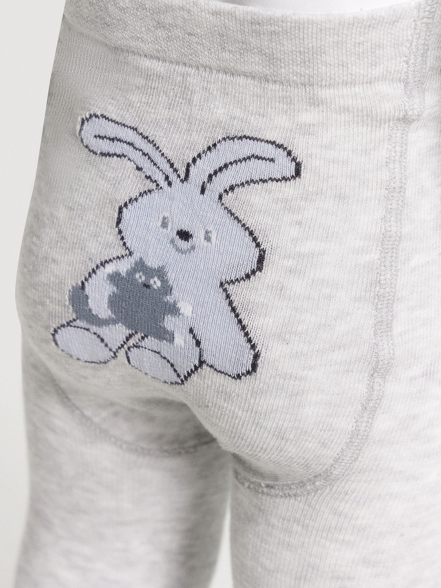 Колготки детские светло-серые с рисунком в виде зайчика на ластовице