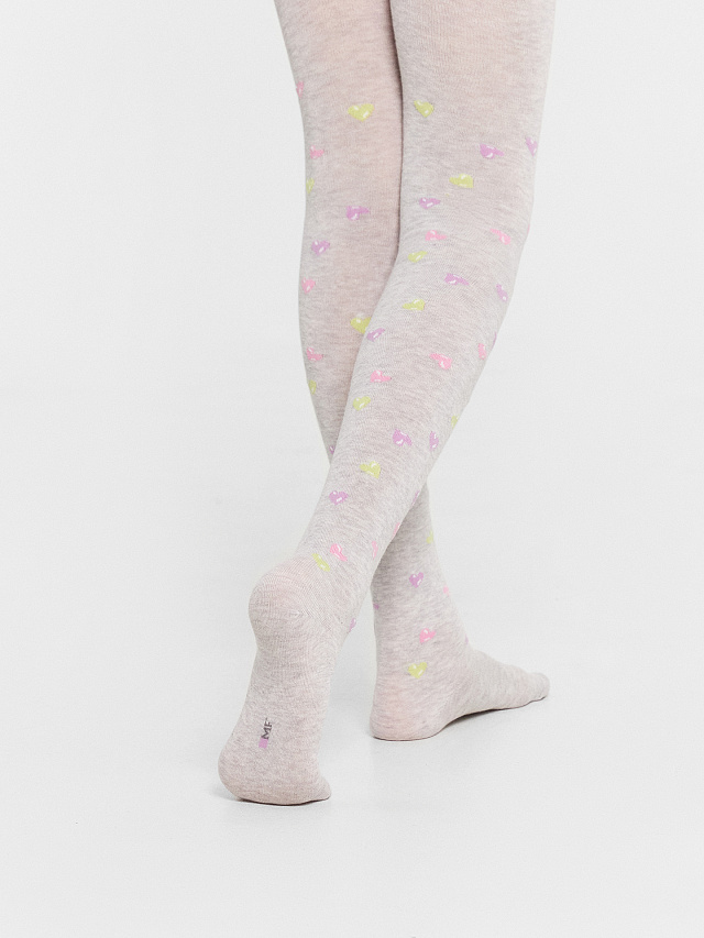 Колготки детские в цвете светло-серый меланж с рисунком в виде сердечек