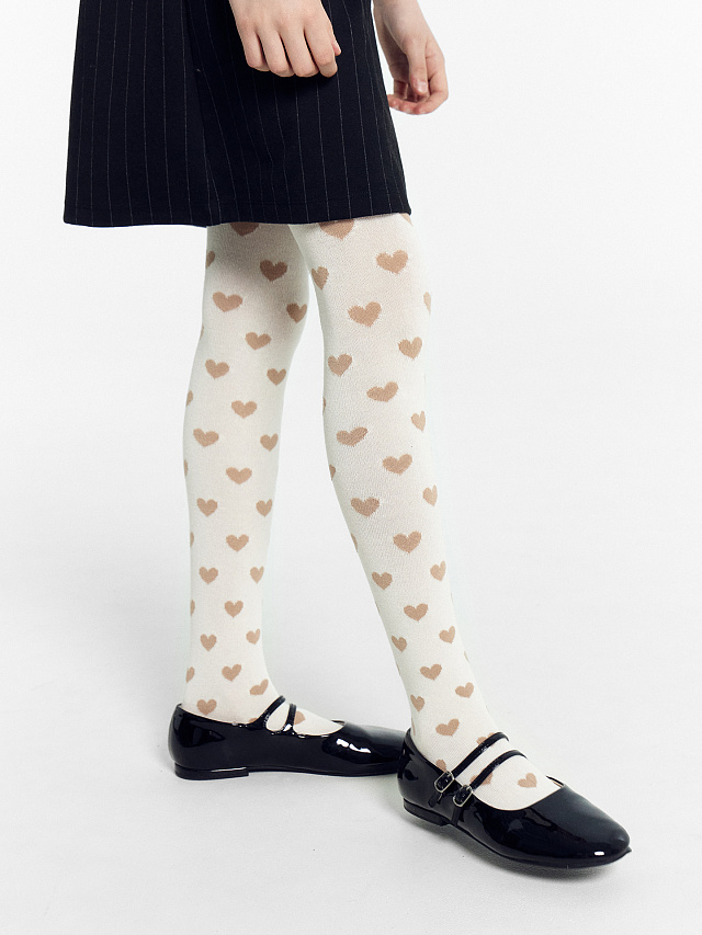 Колготки детские в молочно-белые с рисунком в виде сердечек