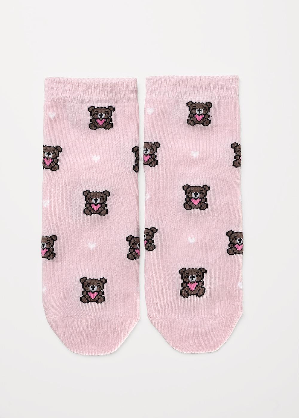 Носки для девочки с ажурной резинкой и рисунками мишки и сердечки.