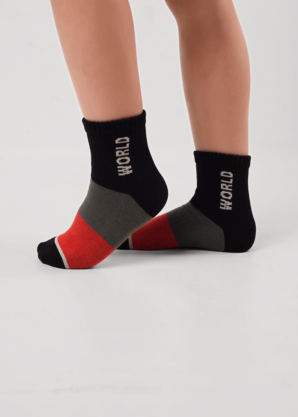 Носки детские с контрастными широкими полосами и надписью "WORLD" .