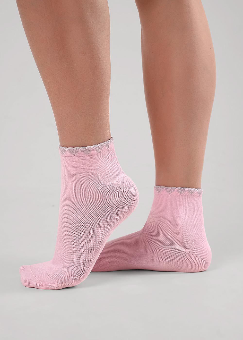 нарядные носки для девочки, сердечки вывязаны из люрекса