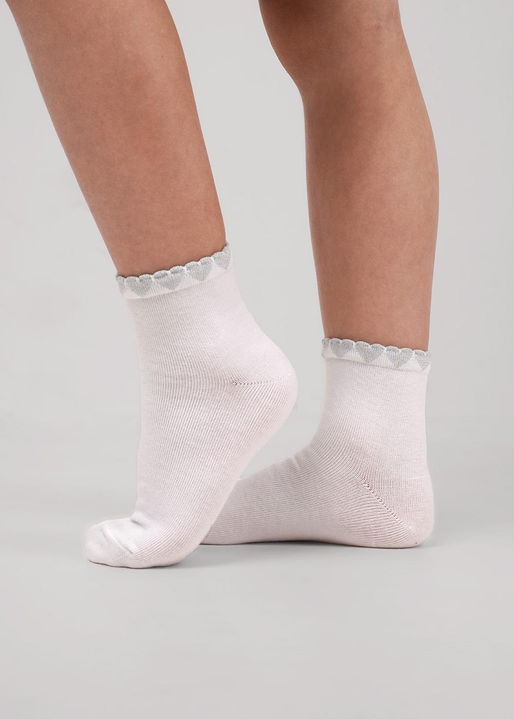 нарядные носки для девочки, сердечки вывязаны из люрекса