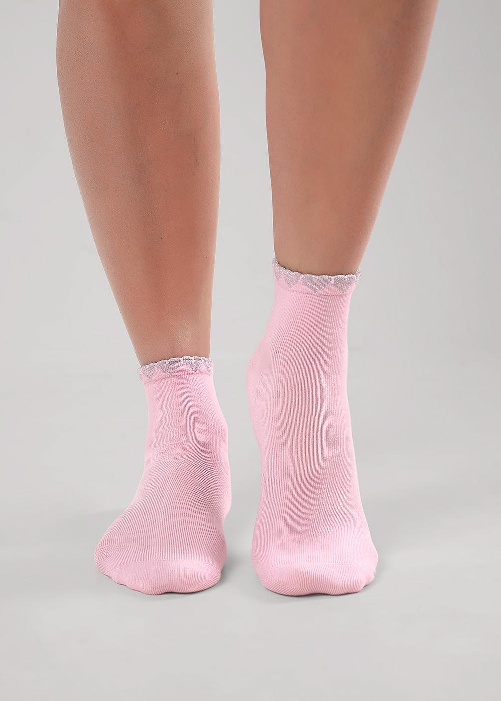 нарядные носки для девочки, сердечки вывязаны из люрекса