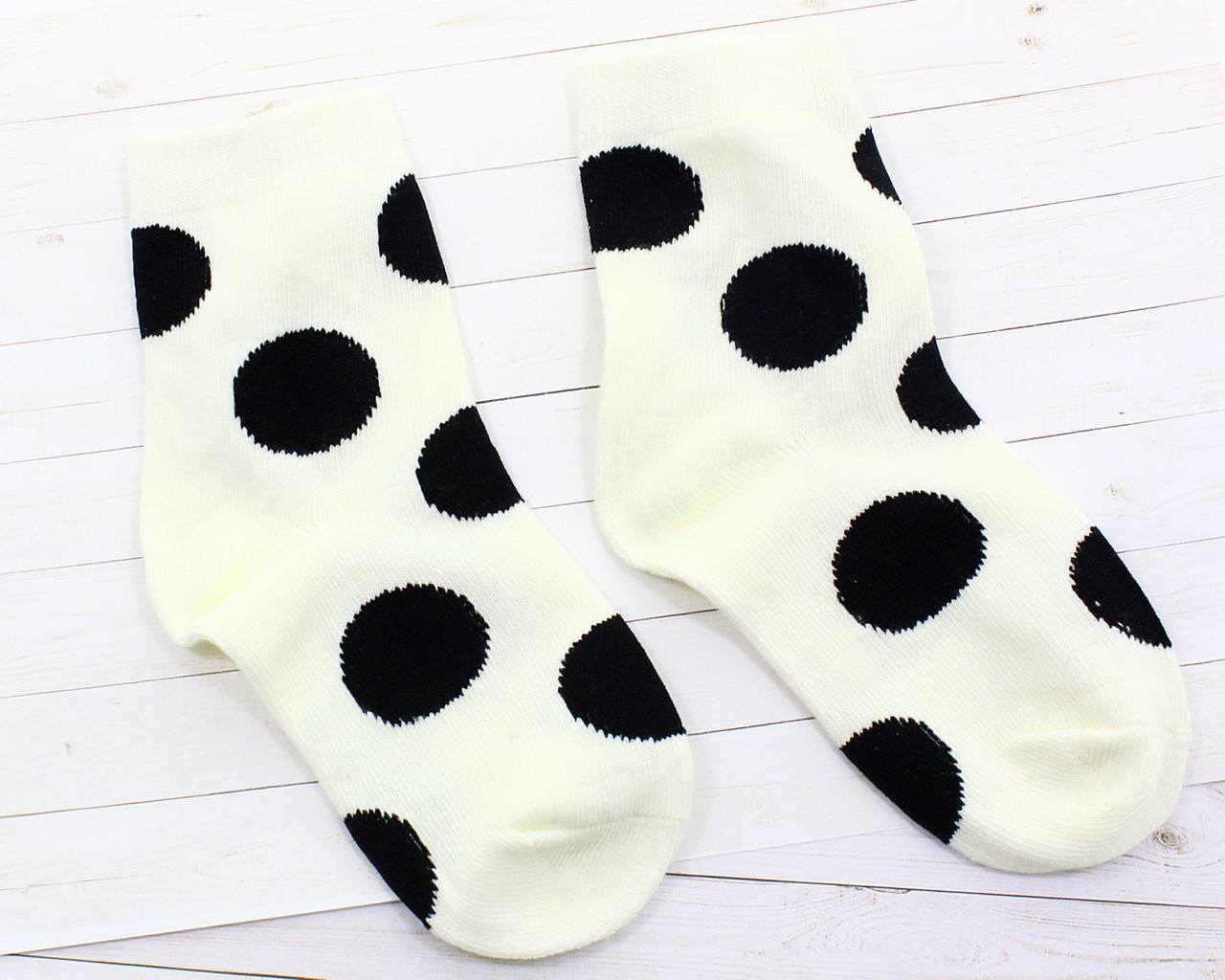 Белый фон носка, чёрный крупный горошек