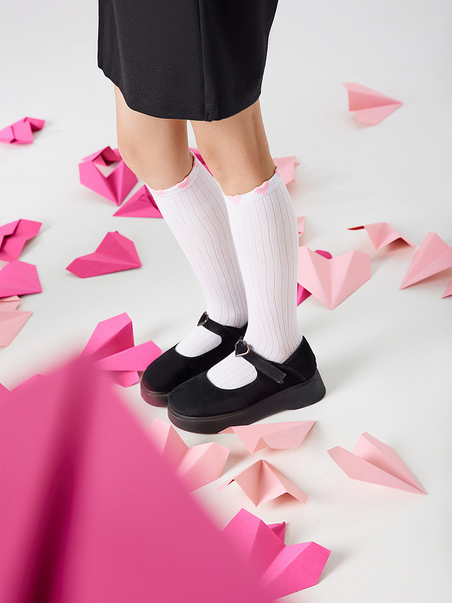 Рис.3212 Детские однотонные гольфы выполненные перекидным переплетением (лапша) 5:1 и пикотом на бортике в виде сердечек.