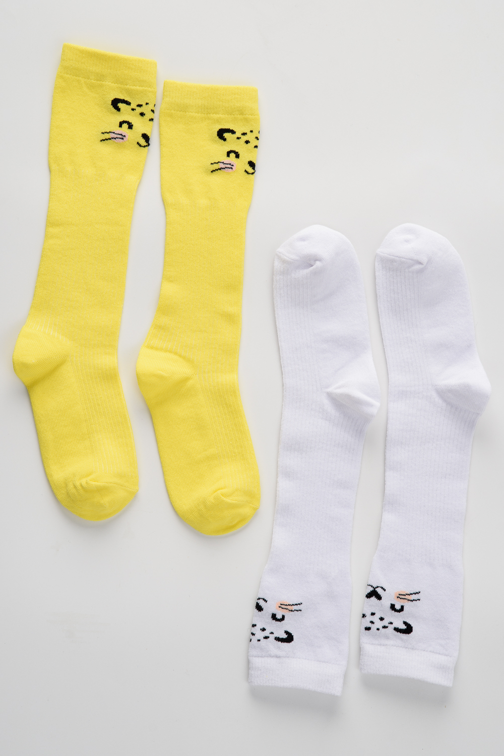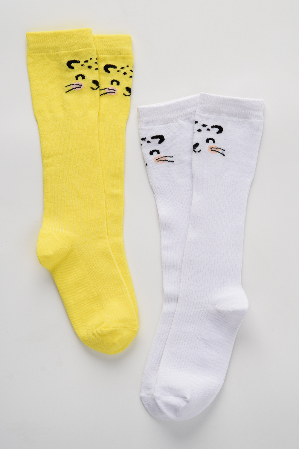 Детские гольфы, набор 2 пары. Отличное решение для детей на лето. Расцветка: белый, желтый (ед.); Состав: 72% х/б 24% ПА 2% ПП 2% эластан.