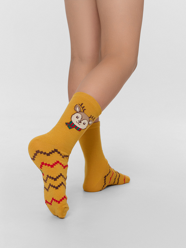 Рис. 3380 Детские классические носки, выполненные из смешанной пряжи с содержанием шерсти и рисунком в виде олененка.