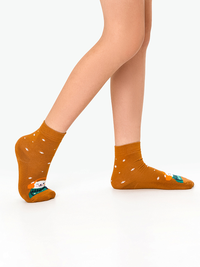 Новогодние носки детские с плюшевым следом и рисунком в виде медведя. Выполнены из высококачественного гребенного хлопка - тонкого, прочного и эластичного. Натуральные волокна отлично пропускают воздух и впитывают влагу, обеспечивают ощущение комфорта в течение дня. Благодаря небольшому количеству эластана в составе, носочки хорошо облегают и сохраняют форму, практичны и долговечны. Пятка и мысок дополнительно усилены для защиты от протирания при активном движении. Резинка мягко, но надежно удерживает носки, не передавливая ногу и не оставляя на коже следов. Отличный вариант для круглогодичного использования. Мягкие и комфортные. Рекомендуем в качестве подарка на Новый год и Рождество!