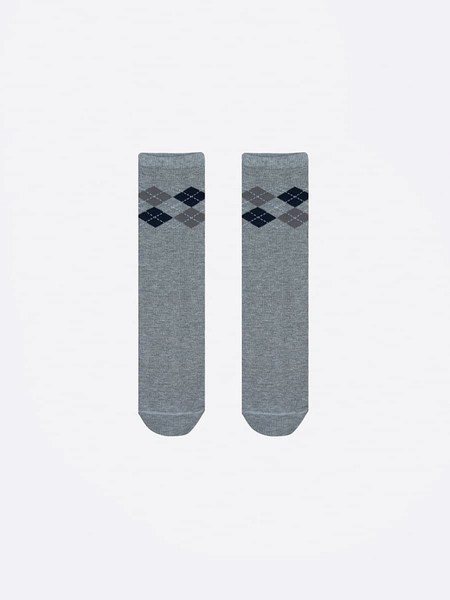 рис.1493 Детский носок гладкий с рисунком в виде ромбиков на паголенке.