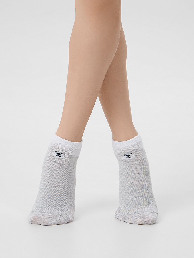 рис.3181 Детский укороченный носок с рисунком в виде двух цветов основы и мишки.