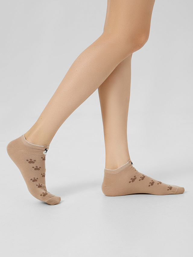 рис.3179 Детский укороченный носок с рисунком в виде лапок и мишек с элементом пикота.