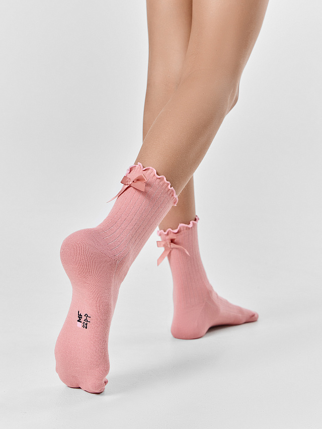 рис.3545 Детский носок с обработкой борта оверлоком и пришивным бантиком.