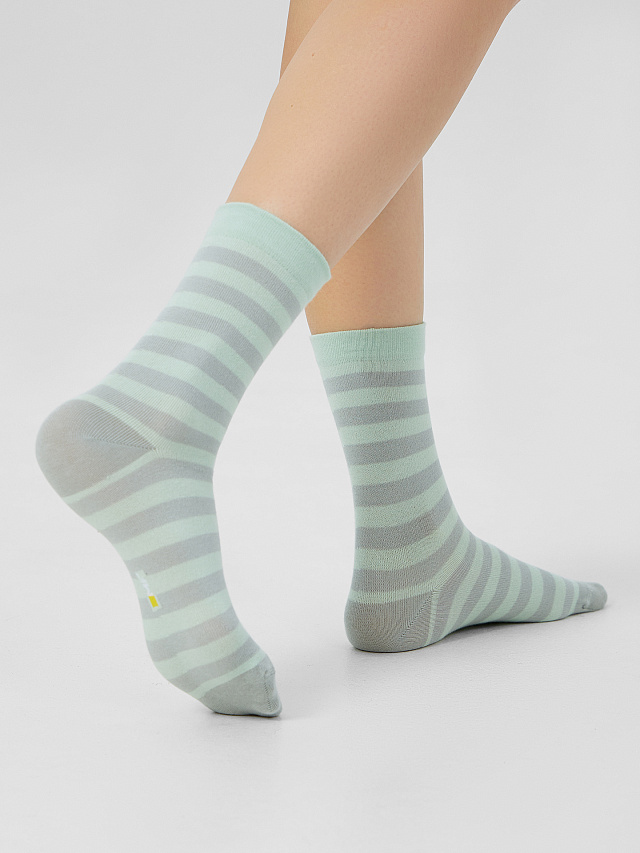 Носки детские из высококачественного хлопка с высокой резинкой и рисунком в виде поперечных полосок. Натуральные волокна отлично пропускают воздух и впитывают влагу, дарят ощущение комфорта в течение дня. Благодаря небольшому количеству эластана в составе, носки удобно сидят на ножке и не сползают, хорошо тянутся и легко надеваются. Пятка и мысок дополнительно укреплены для защиты от протирания. Резинка мягко, но надежно удерживает носки, не оставляя на коже следов. Эти носки точно понравятся вашей маленькой моднице. Рекомендуем!