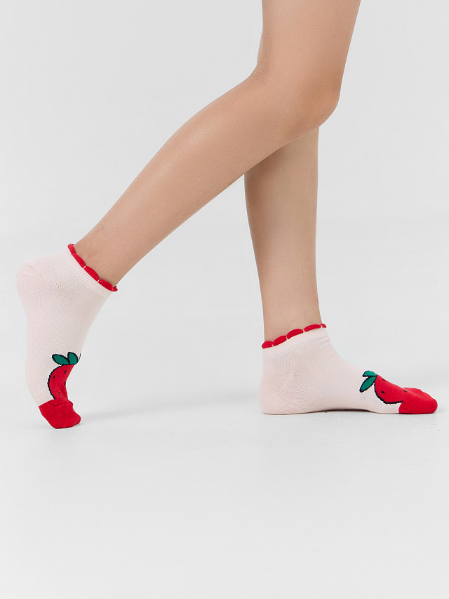 рис.3205 Детский укороченный носок с рисунком в виде клубники.