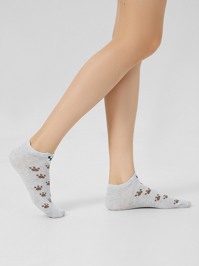 рис.3179 Детский укороченный носок с рисунком в виде лапок и мишек с элементом пикота.