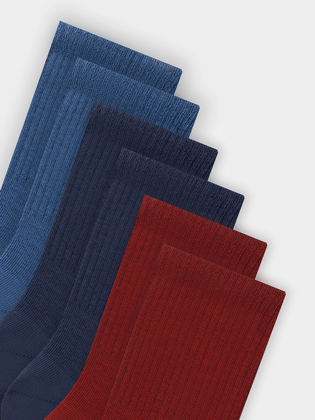 Этот набор однотонных детских носков из высококачественного хлопка – отличное решение для комфортного повседневного ношения. Благодаря натуральным волокнам носки хорошо пропускают воздух, впитывают влагу и обеспечивают ощущение свежести в течение дня. Эластан в составе придает изделию эластичность, позволяя носкам мягко облегать ножку, не сползать и легко надеваться. Укрепленные пятка и мысок предотвращают быстрый износ и обеспечивают дополнительную защиту при активных движениях. Высокая резинка мягко фиксирует носки, не сдавливая кожу и не оставляя следов, что делает их удобными и практичными. Этот набор из трех пар идеально подойдет для маленьких модников, сочетая надежность, комфорт и универсальный стиль!