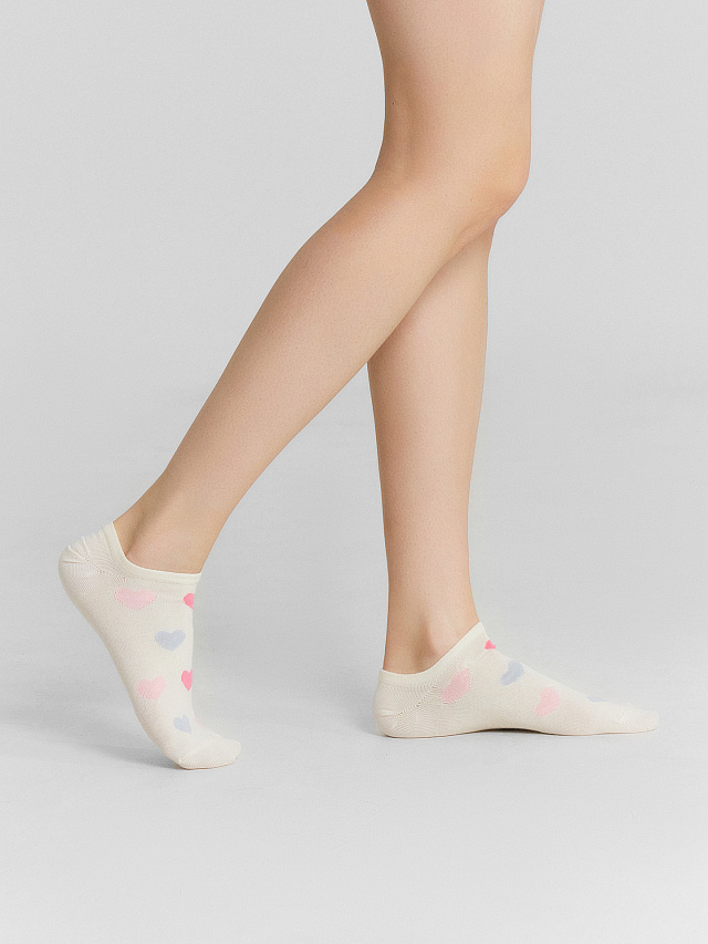 рис.3192 Детский носок суперкороткий с рисунком в виде крупных сердечек.