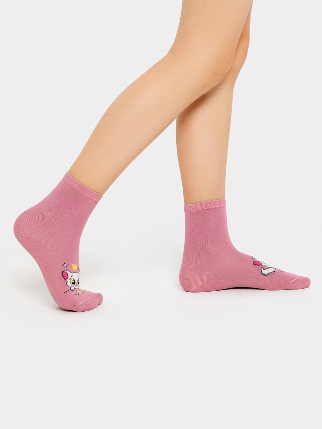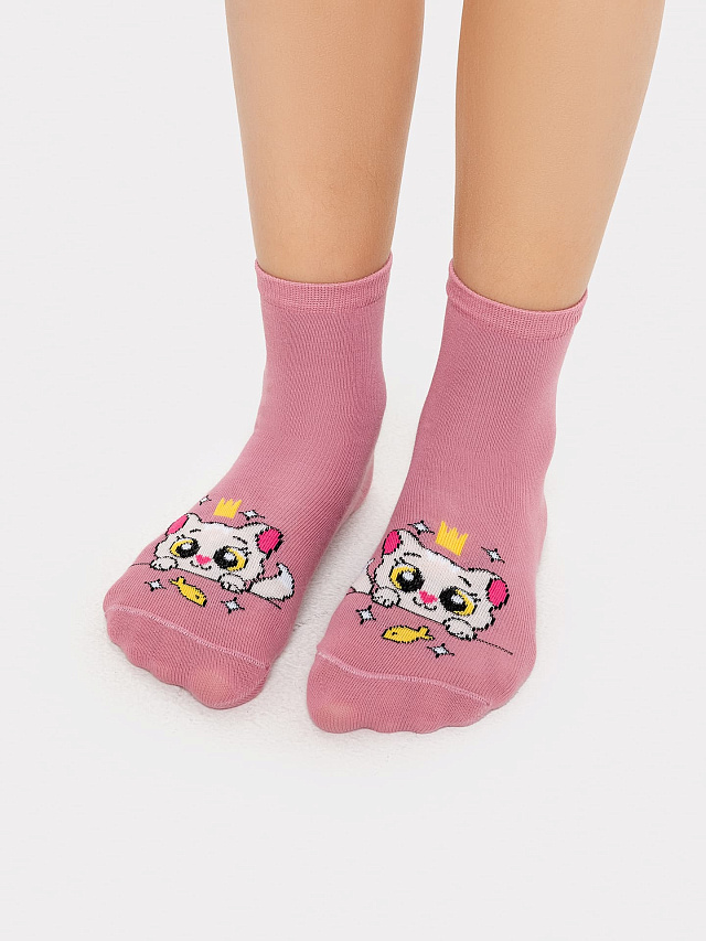 Носки детские фиолетовые с рисунком в виде котика