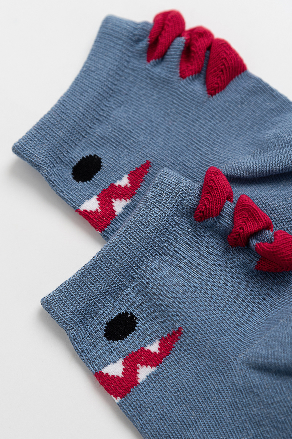 Детские носки с рисунком. Мягкая модель, очень комфортная и подходит для повседневной носки. Носочки в ярких цветах с веселым рисунком дракончика поднимут настроение как деткам, так и их родителям. Расцветка: джинс,нефрит,черный; Состав: 77% х/б 21% ПА 2% эластан.