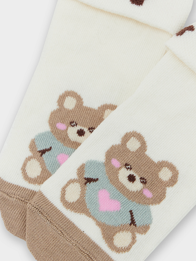 Носки детские кремовые с узором в виде медвежат