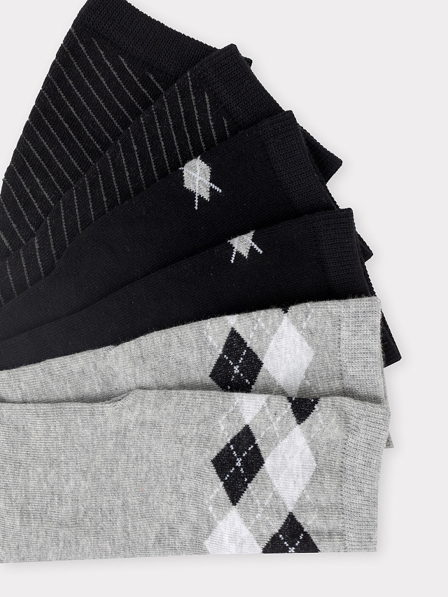 Носки детские мультипак (3 шт.) из высококачественного хлопка с с рисунком в виде ромбов и диагональной полоски. Натуральные волокна отлично пропускают воздух и впитывают влагу, дарят ощущение комфорта в течение дня. Благодаря небольшому количеству эластана в составе, носки удобно сидят на ножке и не сползают, хорошо тянутся и легко надеваются. Пятка и мысок дополнительно укреплены для защиты от протирания. Резинка мягко, но надежно удерживает носки, не оставляя на коже следов. Эти носки точно понравятся вашей маленьким модникам и модницам. Рекомендуем!