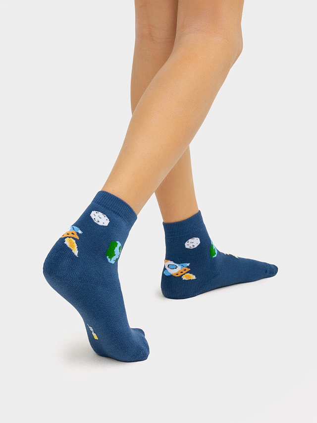 Носки детские плюшевые синие с рисунком в виде космонавтов