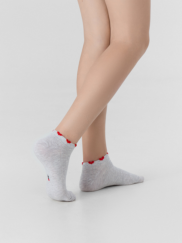 рис.3191 Детские укороченные носки выполненный перекидным переплетением (лапша), с пикотом в виде сердечек на бортике.
