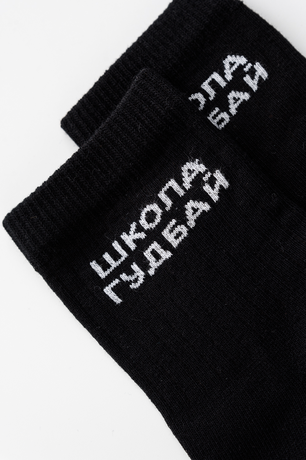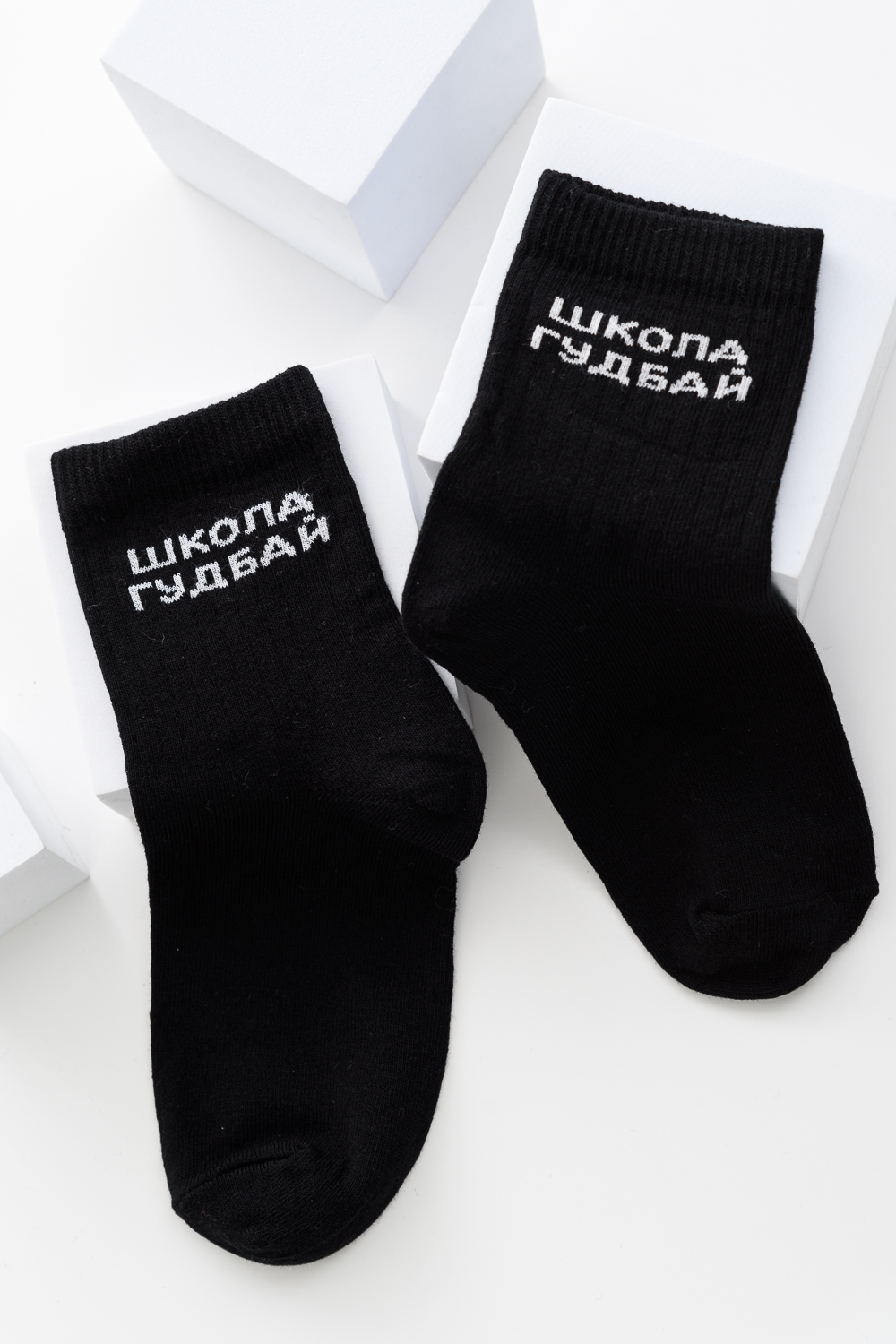 Подростковые носочки с надписью "Школа гудбай", связанные из натурального  хлопка. Креативная модель мягко облегает ногу, не доставляя дискомфорт в течение всего дня. Носки сочетаются с разной обувью, подходят как мальчикам, так и девочкам. Расцветка: черный (ед.); Состав: 77% х/б 21% ПА 2% эластан.