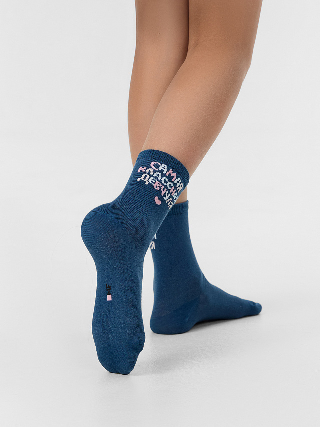 Носки детские синие с надписью "Самая классная девчуля"