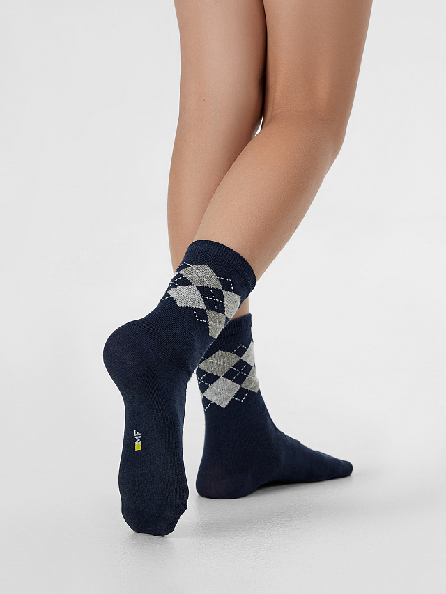 Яркий узор из ромбиков на паголенке добавляет настроения и легко сочетается с любой одеждой. Усиленные пятка и мысок повышают износостойкость, а эластичная резинка мягко фиксирует носок, не сползая и не оставляя следов. Гладкие швы исключают натирание даже в течении активных игр.