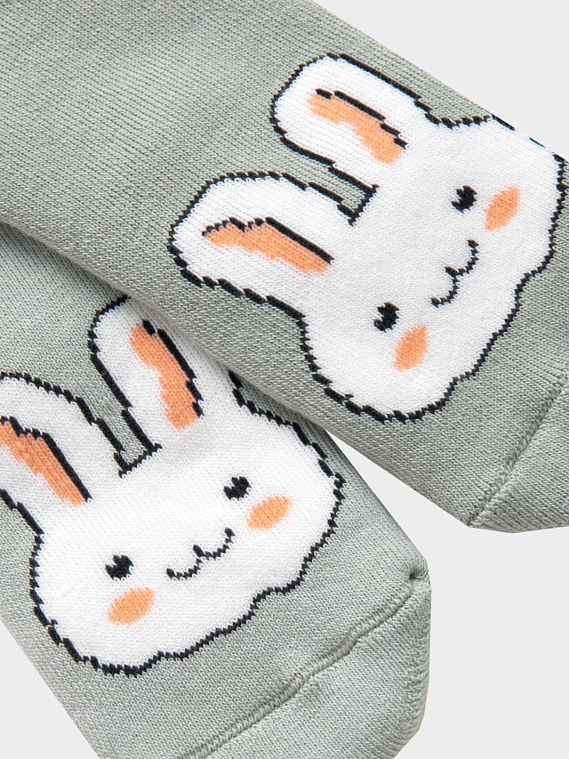 Носки детские светло-оливковые с отворотом и рисунком в виде зайчика