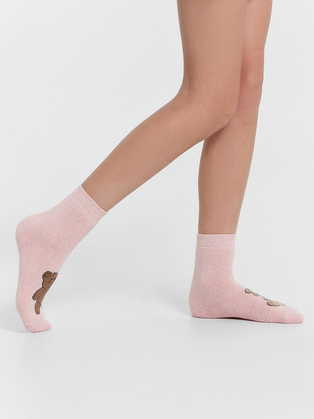Носки детские в цвете розовый меланж с рисунком в виде медвежат