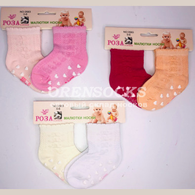РОЗА НОСКИ БЕБИКИ НА ДЕВОЧКУ С ТОРМОЗАМИ КРУЖЕВНАЯ ПОЛУСЕТКА 3583