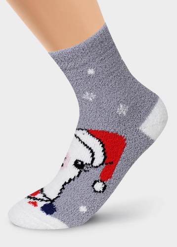 мягкие уютные носки из "травки" в полоску с люрексом, с мордочкой кошки и ушками 3Д