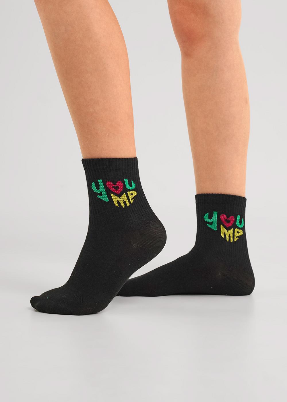 ситильные удлиненные носки для девочки с яркой надписью